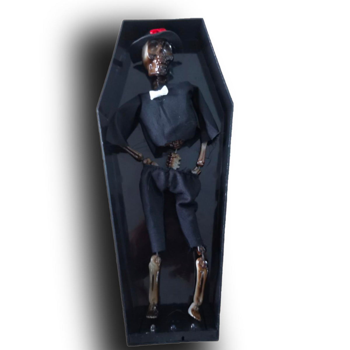 Esqueleto novio bailarín en ataúd de 31 x 14,5 x 6,2 cms.