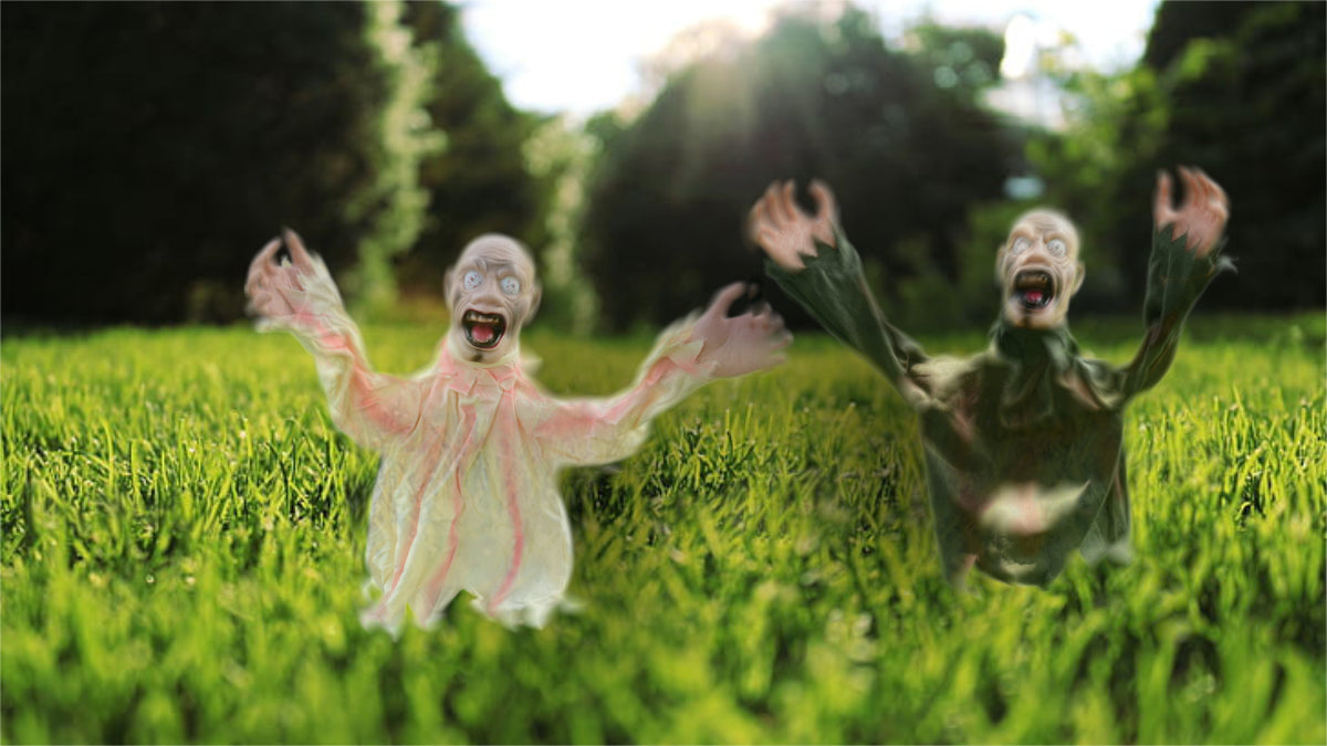 Fantasma animado que si lo tocas o le hablas se mueve y emite sonidos que dan susto de 60 x 90 x 16 cms.