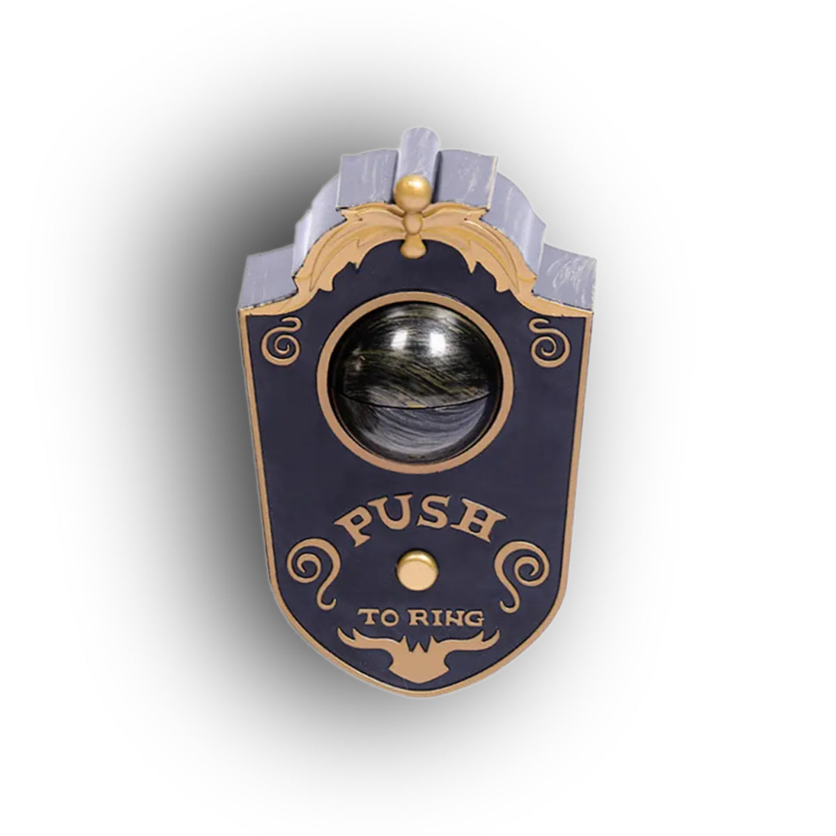 Timbre de puerta ojo animado color negro de 18 x 11 x 7,5 cms.